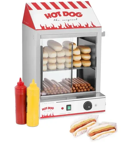 Ein Hot-Dog-Dampfer ist ein praktisches Küchengerät, das speziell entwickelt wurde, um köstliche Hot Dogs schnell und einfach zu garen. Durch den Dampf, der gleichmäßig zirkuliert, bleiben die Würstchen saftig und zart, während das Brötchen weich und warm wird. Diese Methode sorgt dafür, dass der echte Geschmack der Hot Dogs bewahrt bleibt, und macht sie zu einer beliebten Wahl für Feste und Partys. Mit einem Hot-Dog-Dampfer können Sie mühelos mehrere Portionen zubereiten und Gäste mit köstlichen Snacks verwöhnen. Fragen Sie direkt nach einem Komplettangebot mit allen notwendigen Zutaten für diesen Imbiss.